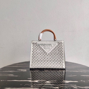 • PRADA-1BG405 프라다 화이트 트라이앵글 로고 아일릿 탑 핸들 백