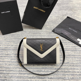 • SAINT LAURENT-668863 생 로랑 블랙/화이트 퀄트 램스킨 GABY 사첼 백