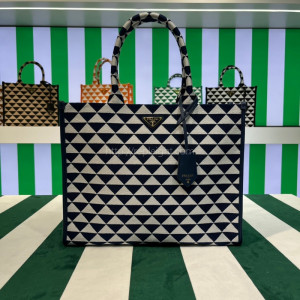 • PRADA-1BA356 대형 프라다 심볼 자카드 패브릭 핸드백
