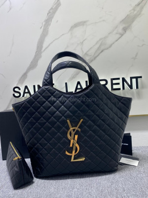 • SAINT LAUREN-698651 퀼트 램스킨 ICARE 맥시 쇼퍼백