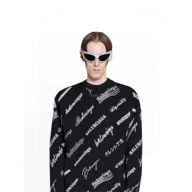 발렌시아가-BALENCIAGA 724858T16651070 MEN'S LOGOMANIA ALL OVER SWEATER IN BLACK > 의류