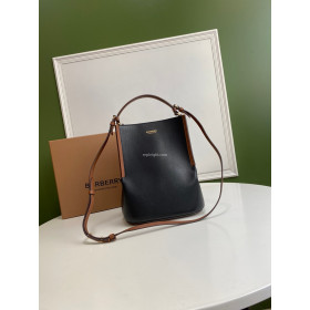 • BURBERRY-80225931 버버리 블랙 스몰 투톤 레더 페기 버킷 백