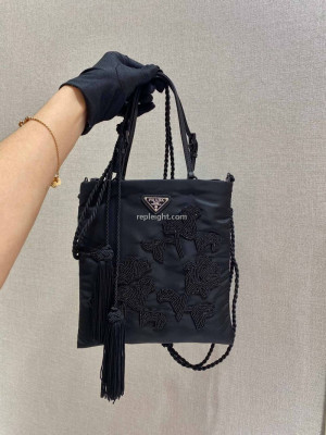 • PRADA-1BA252 프라다 블랙 나일론 토널 플로랄 자수 핸드백