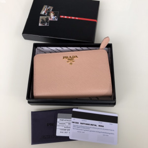 PRADA-1M1225 프라다 로사 사피아노 가죽 메탈 금장로고 중지갑 > 지갑