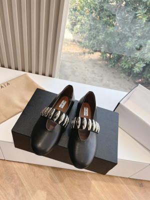 • 알라이아-ALAIA-AA3A053C0N04 - 999 송아지 가죽 트라이벌 발레 플랫 슈즈
